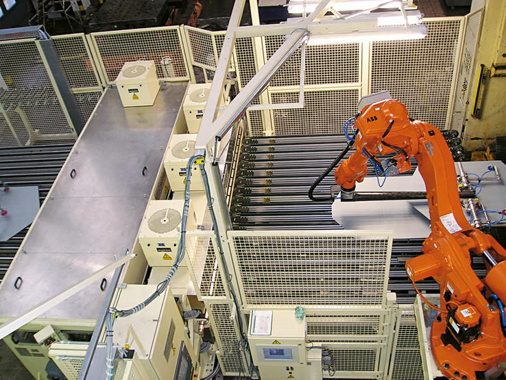 Esta é precisamente a área de actividade da ABB Automation GmbH em Friedberg - Hesse. Aqui são desenvolvidas soluções individuais para sistemas de negócios, assim como pacotes funcionais para determinadas aplicações – tendo como base o alargado leque de robôs da ABB. A empresa está estruturada em várias divisões. A divisão "Robot Automation & Products" (RAP) com cerca de 120 funcionários, entre outros trabalhos desenvolve e produz células completas de robôs para a indústria automóvel e outros ramos em geral. Numa aplicação típica, por exemplo robôs dedicados à remoção de peças de uma máquina para acabamento e consequente embalamento e paletização. Desenvolvimento em acção